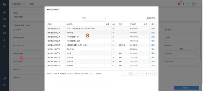 在工单页,双击A这个位置,就会弹出B,B是iframe,内部嵌套的是一里面配置的url。