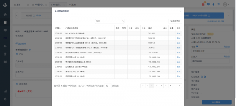 当帮我吧工单的自定义字段–资产表类型字段的元数据来自于第三方数据时,工单页面内使用第三方系统提供的元数据,由帮我吧接入元数据,展示第三方数据在资产表页面内;选择数据,当选择完数据,帮我吧会使用选择的数据来回填工单本字段内容。 可用于配件库等业务场景。