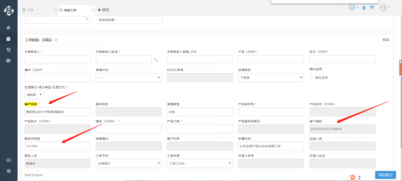 ⑧assignment参数仅在单选时有效,链接中配置了多选参数时,传入此参数无效;配置好后在工单创建时可带入联系人信息或者公司信息(以及公司默认联系人),如果联系人离职则不带入;工单提交后,修改选择资产客户信息不会再随之改变。
