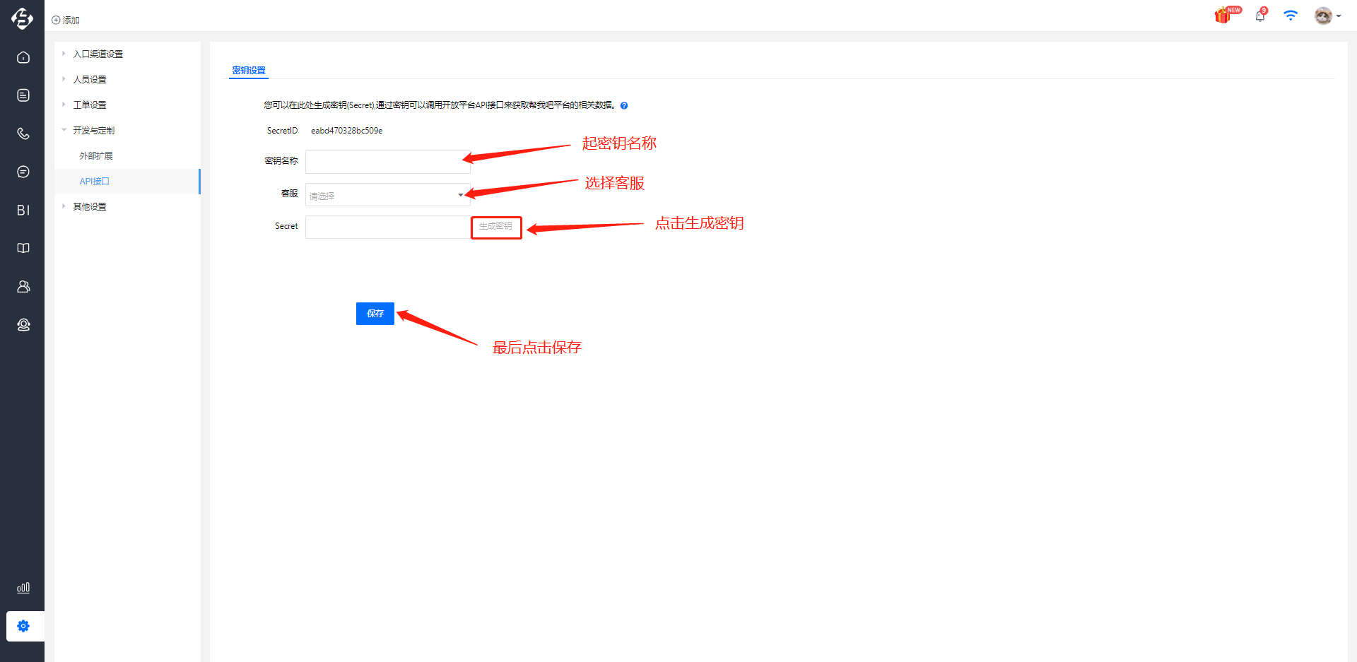 ①在帮我吧后台的API接口板块中生成对应token,注意使用主账号进行生成对应的key及secret