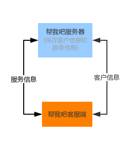 在不与第三方CRM结合的情况下,客户信息和服务信息都保存在帮我吧服务器中。如下图所示,帮我吧客服端从帮我吧服务器获取客户及其服务信息,展示给客服人员: