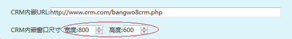 不同于前文所述的回调接口,此接口本身需要有一个网页界面。在访问此接口时,帮我吧客服端会根据系统配置中配置的内嵌窗口尺寸(如下图所示),创建一个内嵌的浏览器窗口打开此接口地址(之所以要求CRM接口本身提供界面是因为不同CRM系统可能有不同的添加公司的UI界面,帮我吧客服端无法做一个通用界面来添加公司)。