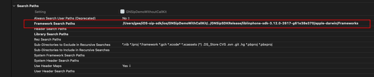 1.如果有出现找不到头文件或者找不到库的情况,请检查编译设置里的framework搜索路径